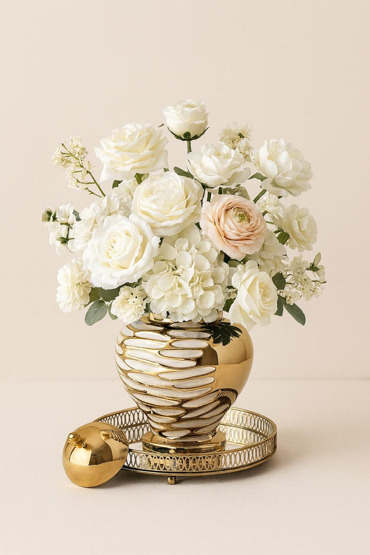 Shein|Metallic Gold White Temple Jars